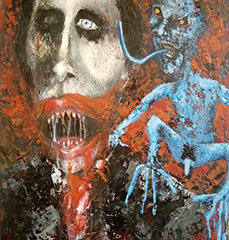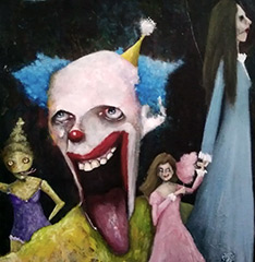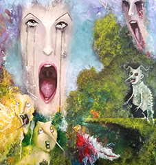 I paint to get lost. It’s the moment of flow – where shapes, shadows and textures start to whisper – that keeps pulling me back to the canvas. In those early layers of acrylic, faces, figures, and strange little creatures begin to reveal themselves. I never go looking for them; I just listen. My inner voice takes the lead, and I follow.